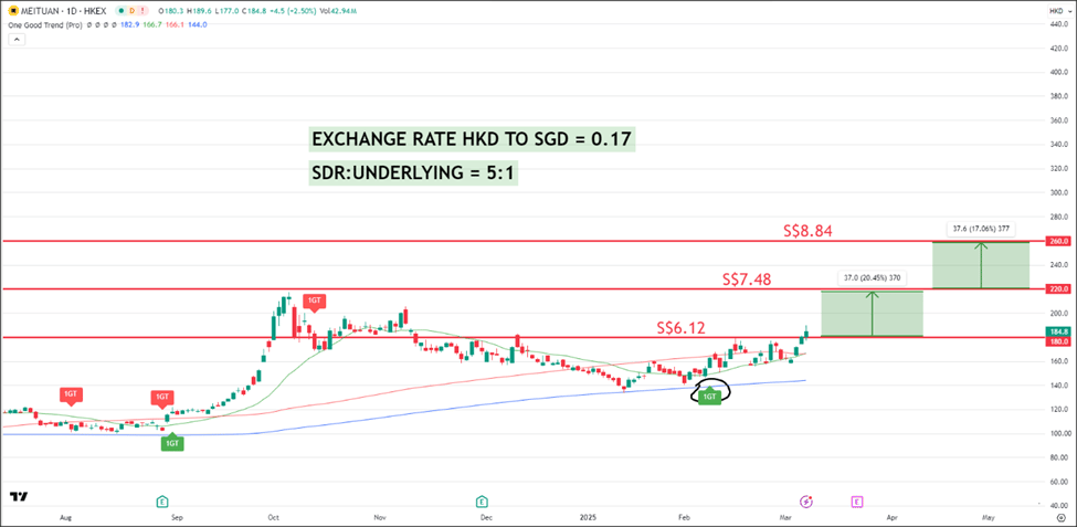 Well, you can take a position in this SDR, which is named Meituan HK SDR 5to1 (HMTD) currently priced at S$6.33.