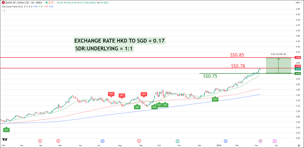 For Bank of China’s HK SDR listed on SGX, the SDR ratio is 1 SDR to 1 underlying share.