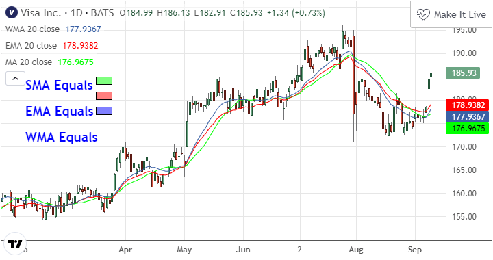 Different types of Moving Averages (TradingView)