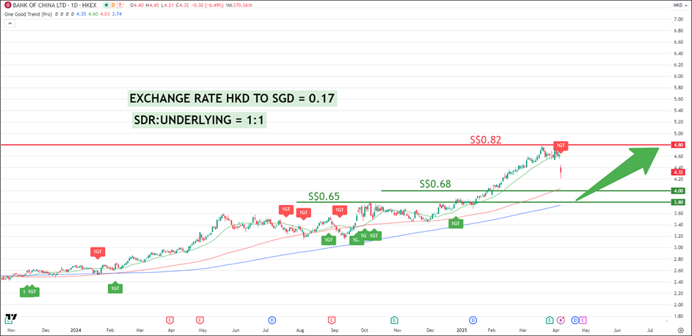 But amidst the panic, I zoom in on Bank of China’s SDR listed on SGX, using my One Good Trend (1GT) Strategy to assess if this could be a rare opportunity in disguise. In this article, I break down the chart signals, highlight the next key support zones, and explain what needs to happen before I’d consider entering again. If you’re feeling unsure about what to do next—pause, breathe, and read on. Timing the market in moments like these is where smart traders get ahead.