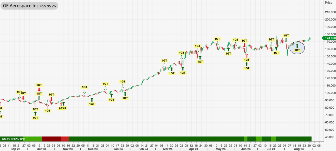 1GT Bullish Signal Appeared on 14 Aug 24, No Exit Signal Yet