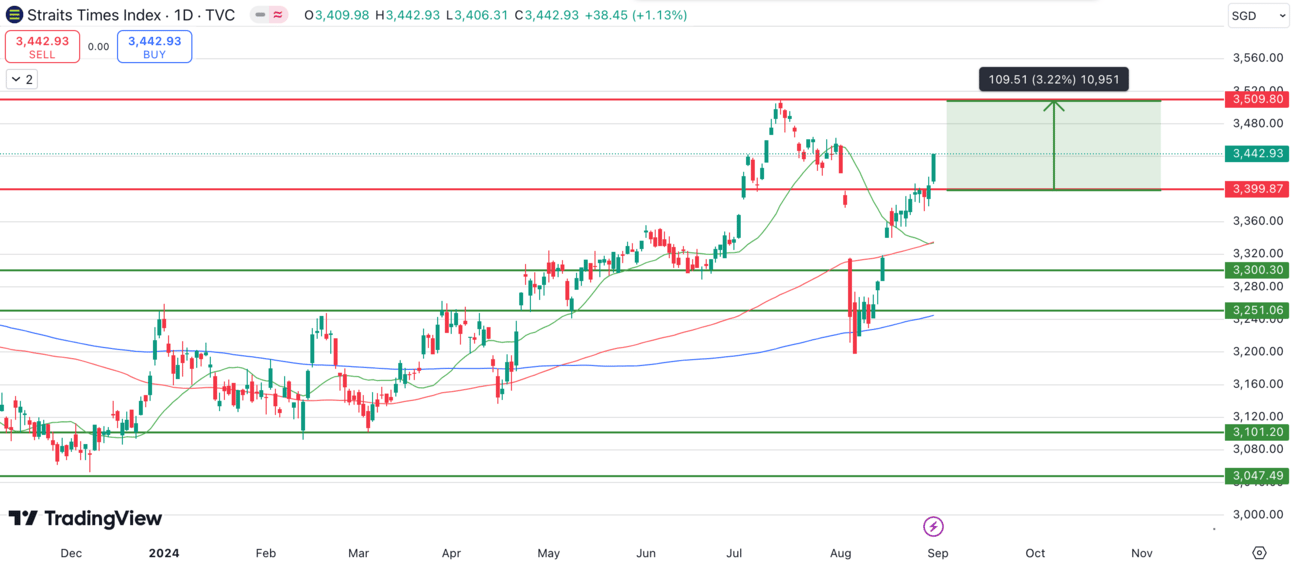 STI had managed to break and hold above the 3,400 level to close off August after rebounding from the low of 3,200 due to the global sell-off at the start of August.